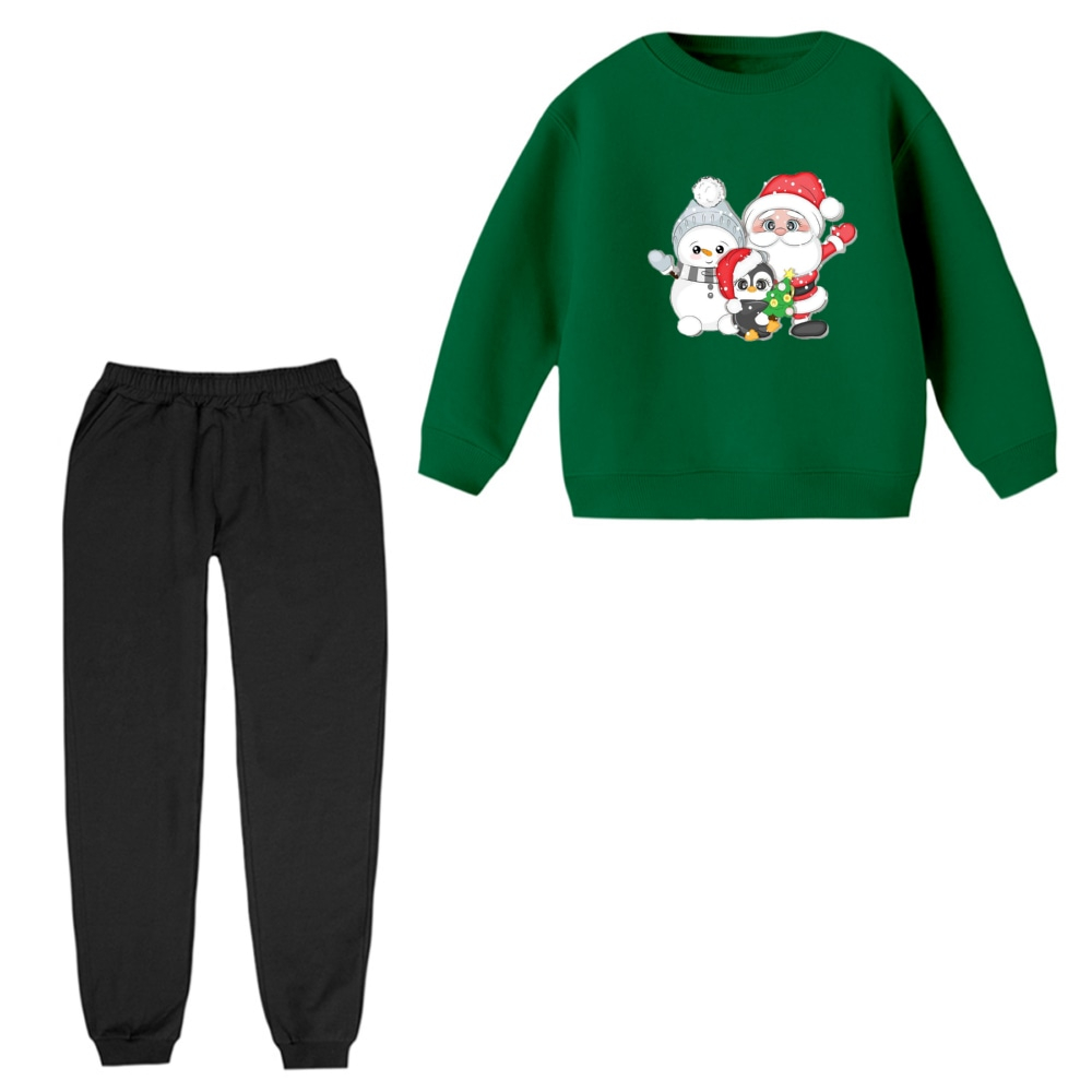 ست سویشرت آستین بلند و شلوار راحتی بچگانه مدل پنگوئن کریسمس کد 10