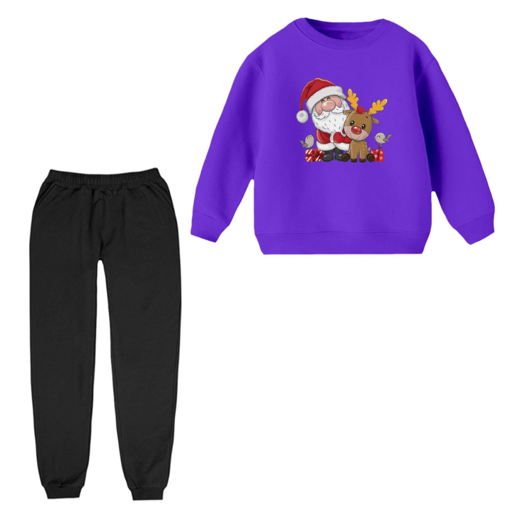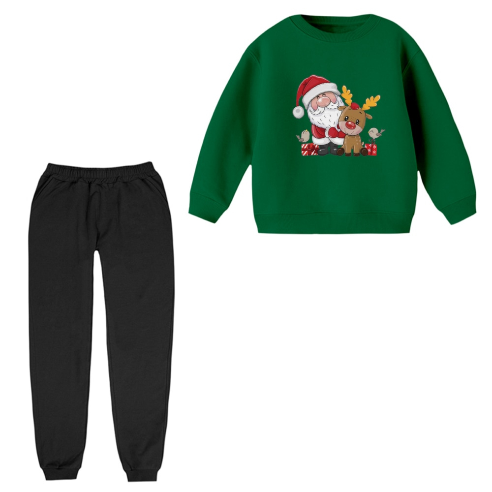 ست سویشرت و شلوار راحتی بچگانه مدل بابانوئل و گوزن کریسمس کد 5