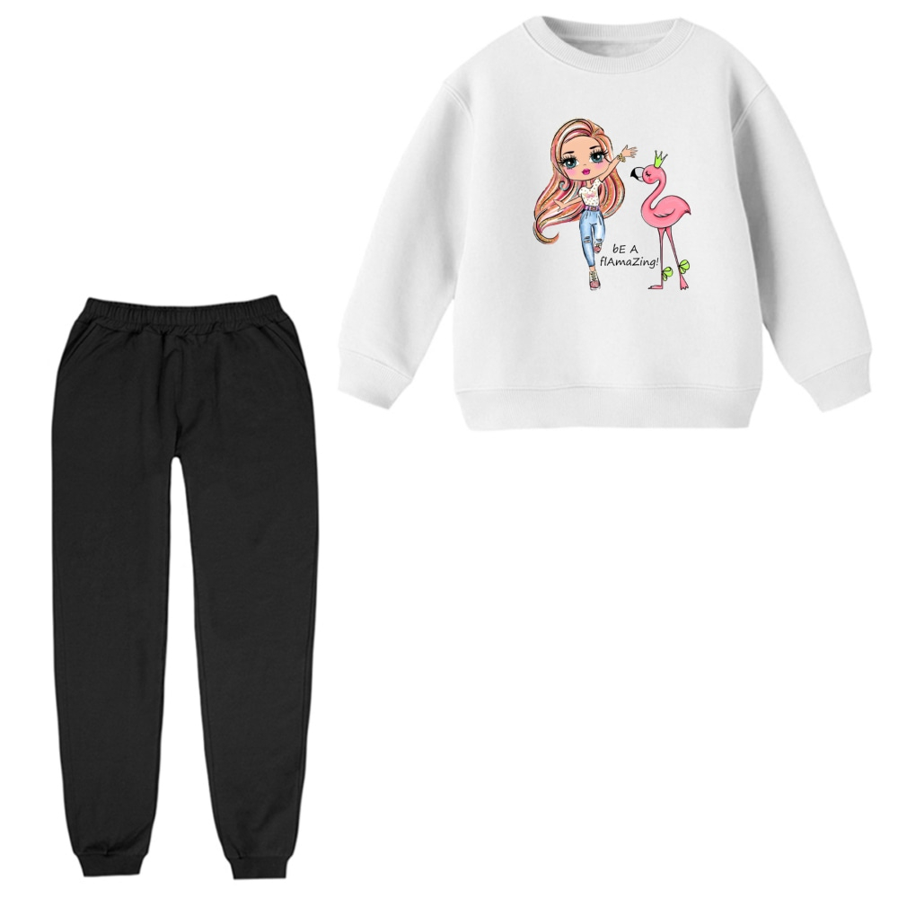 ست سویشرت و شلوار راحتی بچگانه مدل دختر و فلامینگو