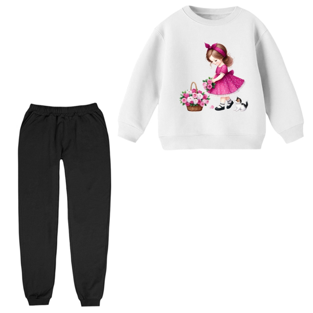 ست سویشرت و شلوار راحتی بچگانه مدل دخترک و گربه