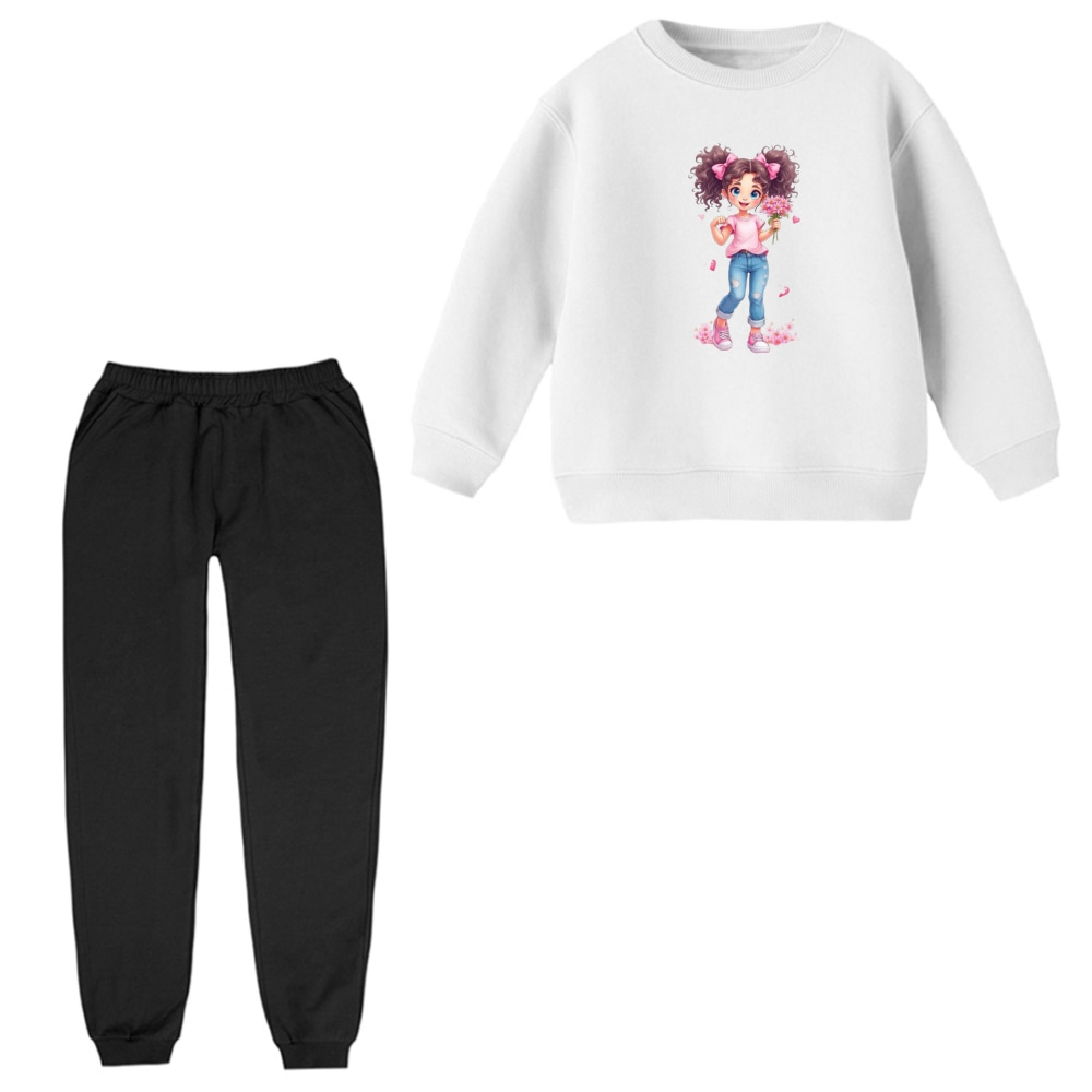 ست سویشرت و شلوار راحتی بچگانه مدل دخترک و گل