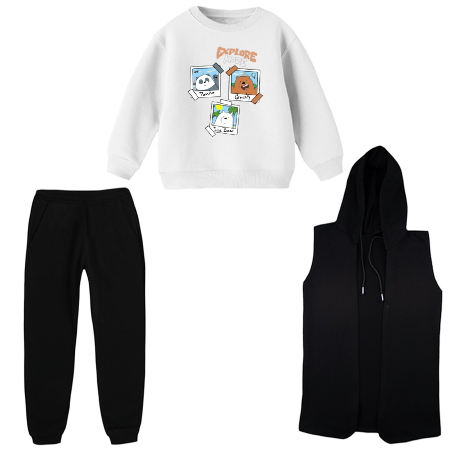 ست 3 تکه لباس راحتی بچگانه مدل خرس های کله فندقی کد 5