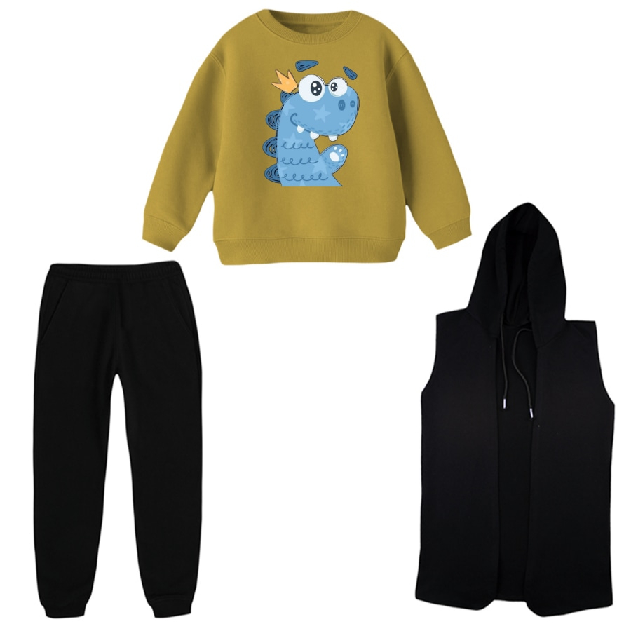 ست 3 تکه لباس راحتی بچگانه مدل دایناسور کد 4