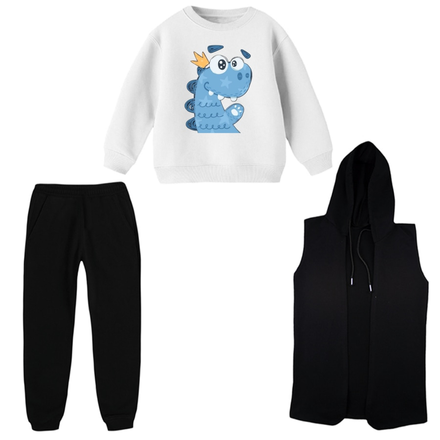 ست 3 تکه لباس راحتی بچگانه مدل دایناسور و اسکیت
