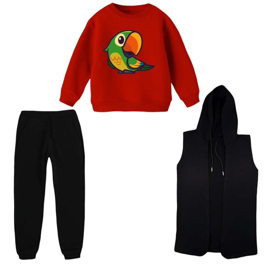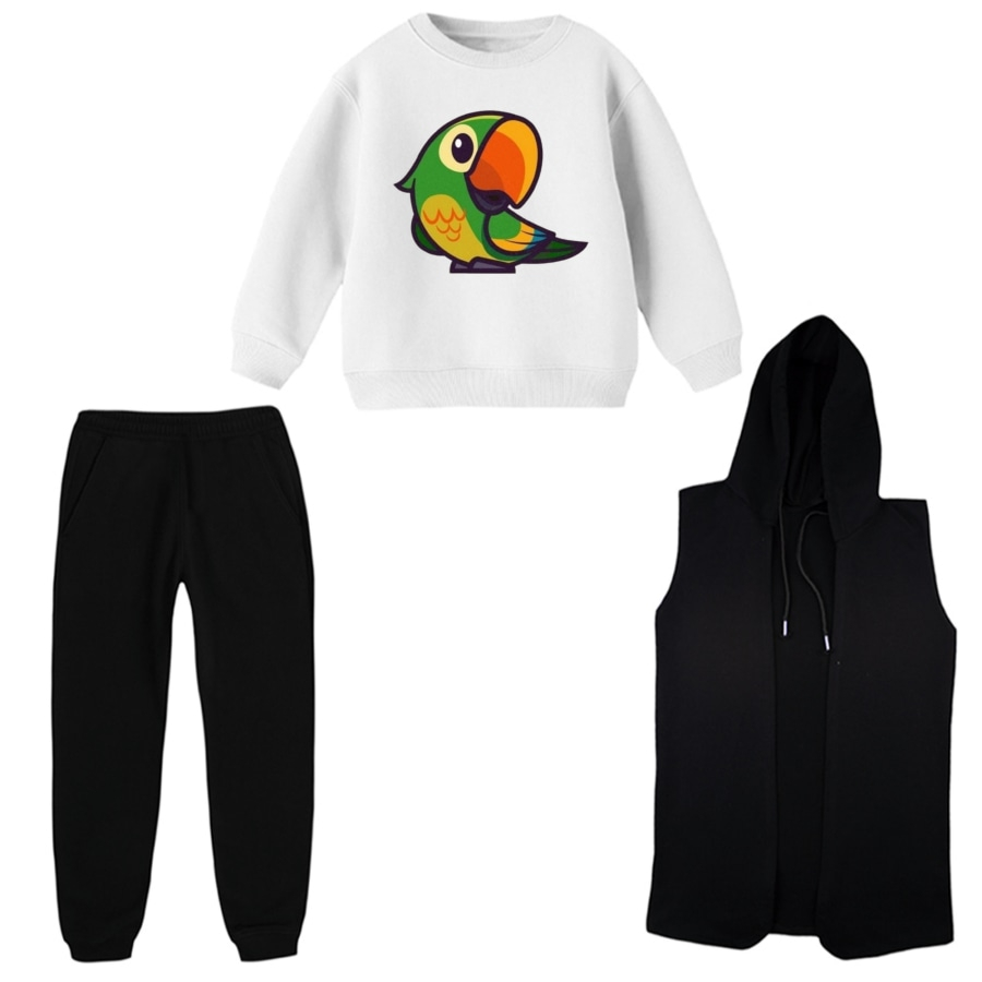 ست 3 تکه لباس راحتی بچگانه مدل طوطی