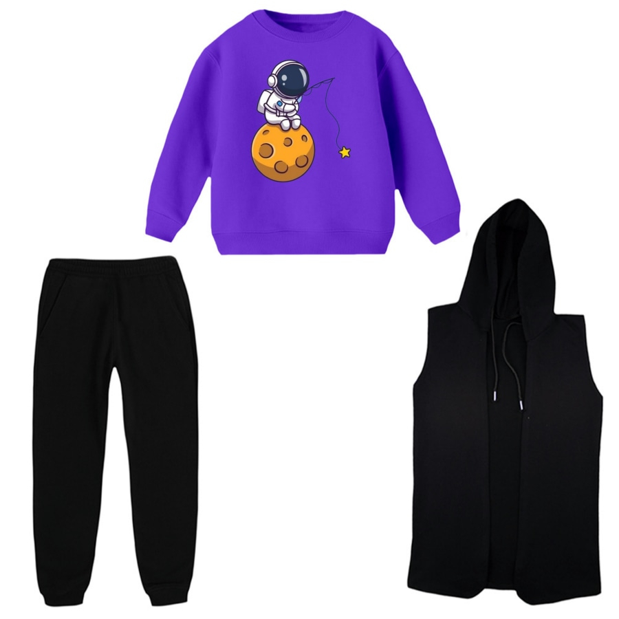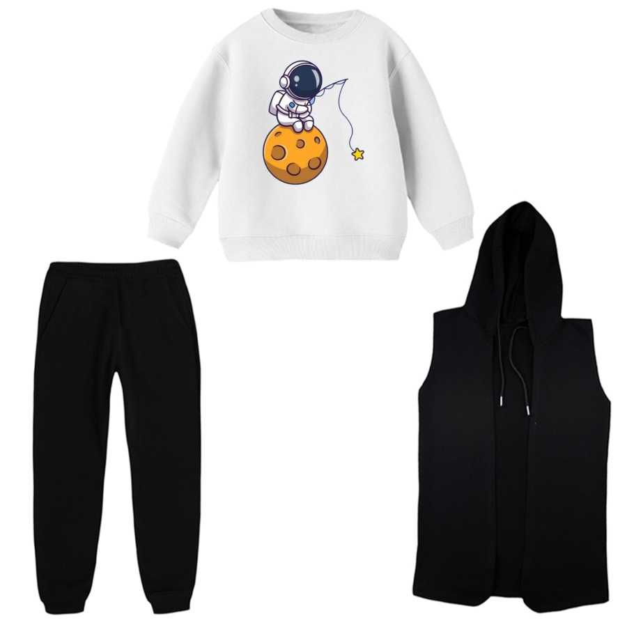 ست 3 تکه لباس راحتی بچگانه مدل فضانورد و ماه کد 3