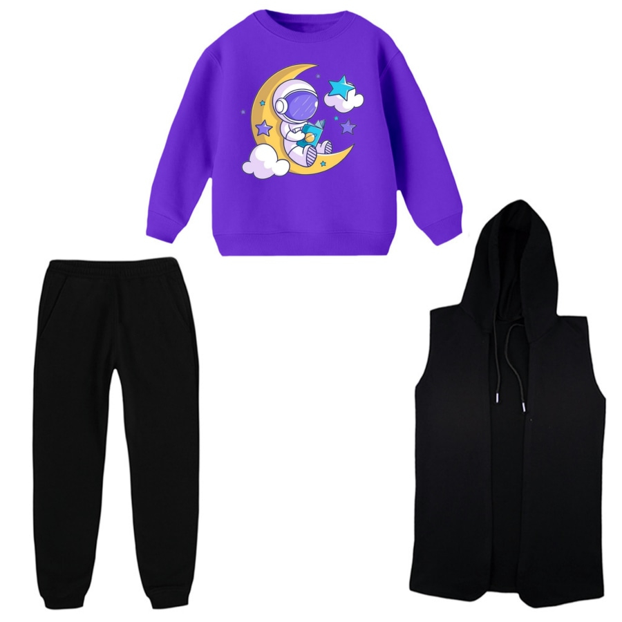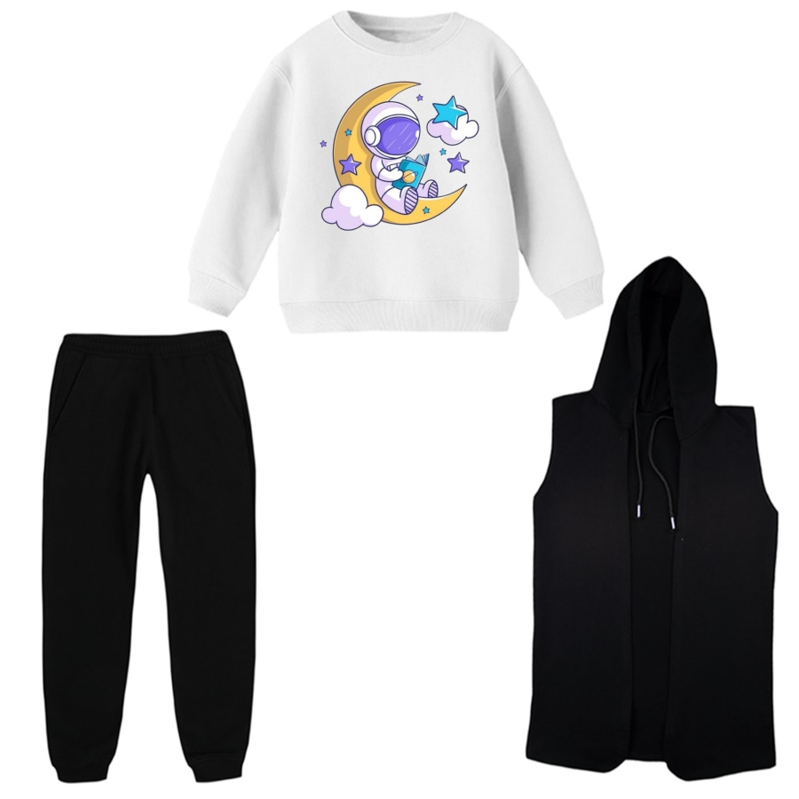 ست 3 تکه لباس راحتی بچگانه مدل فضانورد و ماه کد 1