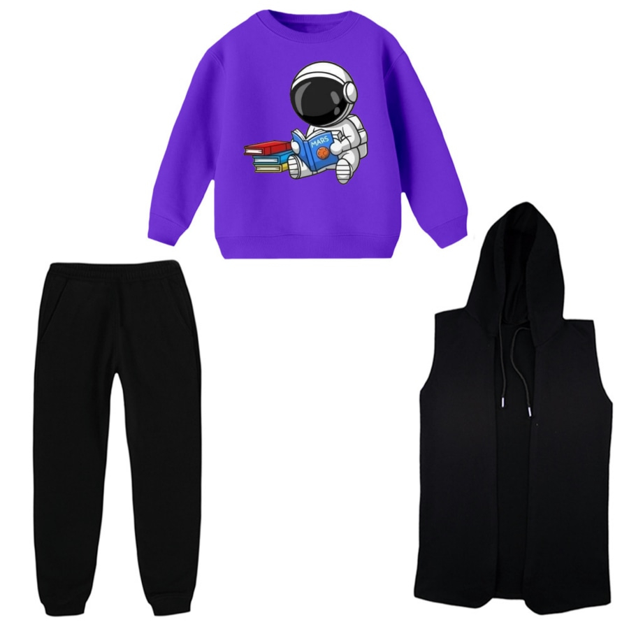ست 3 تکه لباس راحتی بچگانه مدل فضانورد و کتاب