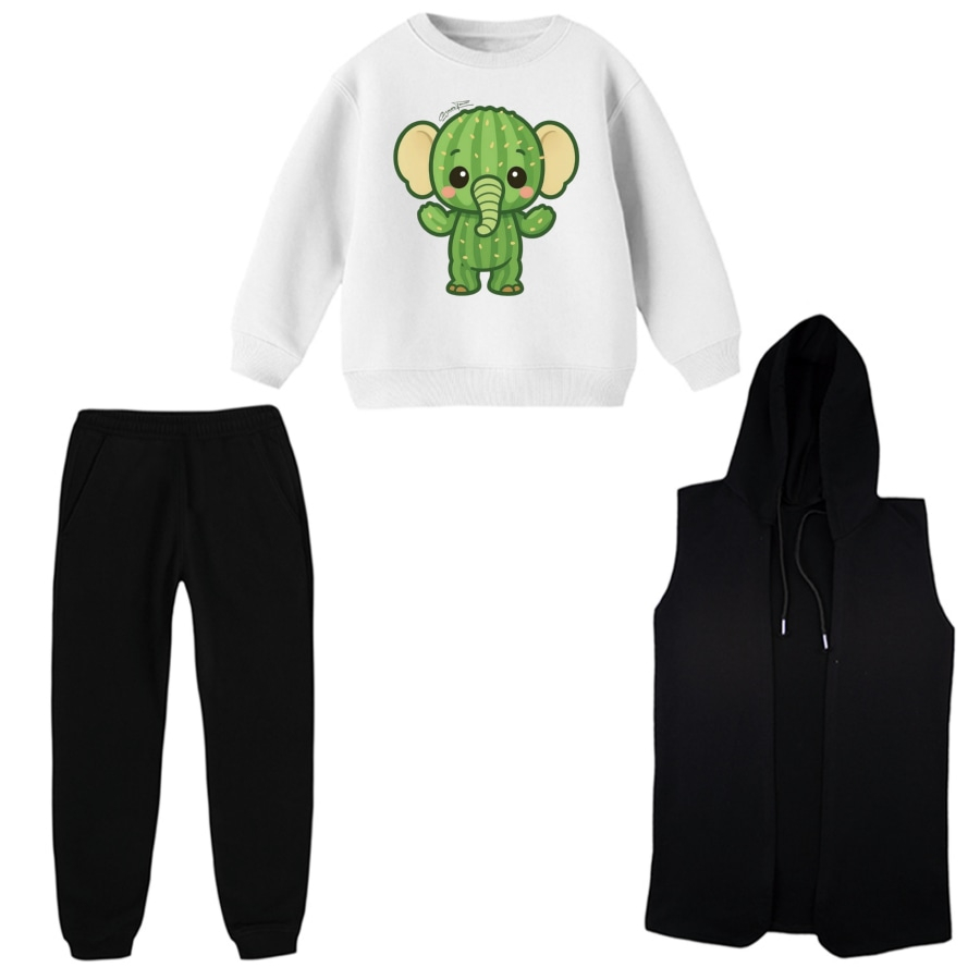 ست 3 تکه لباس راحتی بچگانه مدل فیل کاکتوسی