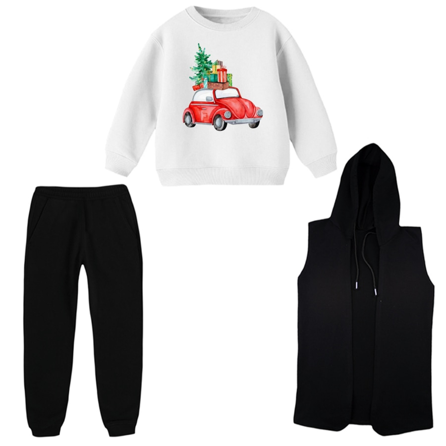خانه پوشاک بچگانه ست سه تکه دورس بچگانه ست 3 تکه لباس راحتی بچگانه مدل ماشین کریسمس