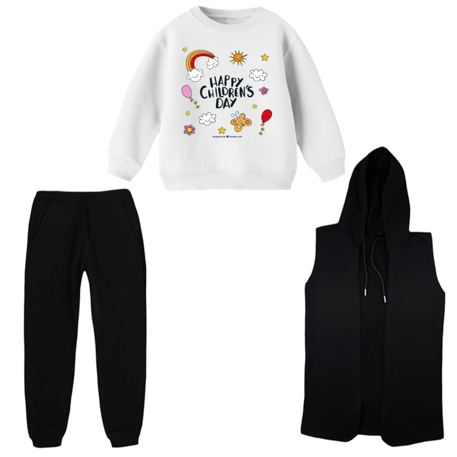 ست 3 تکه لباس راحتی بچگانه مدل نوشته کودک