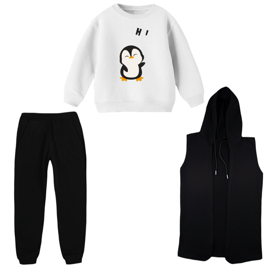 خانه پوشاک بچگانه ست سه تکه دورس بچگانه ست 3 تکه لباس راحتی بچگانه مدل پنگوئن کد 1