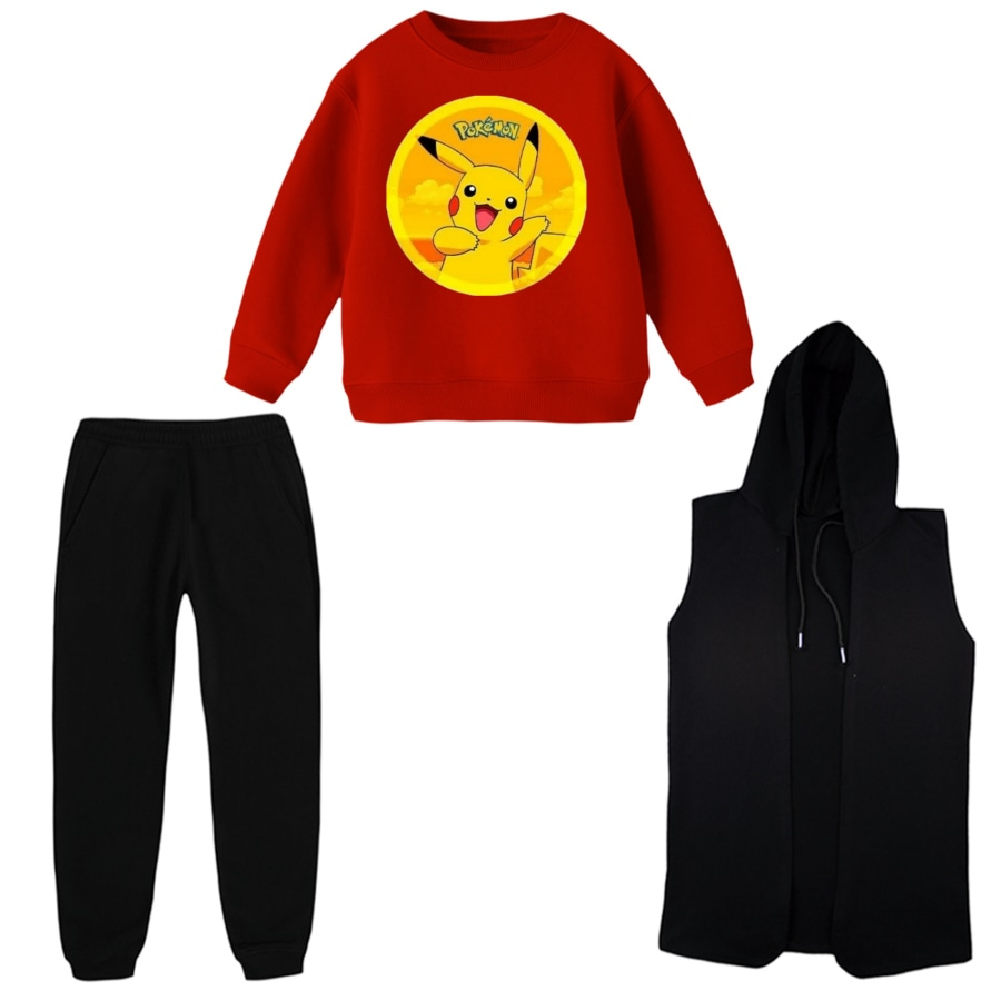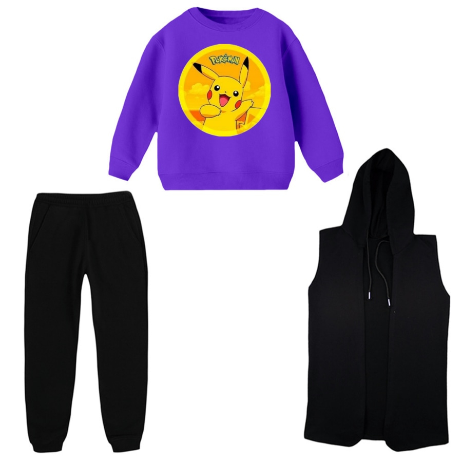 ست 3 تکه لباس راحتی بچگانه مدل پوکی مون کد 2