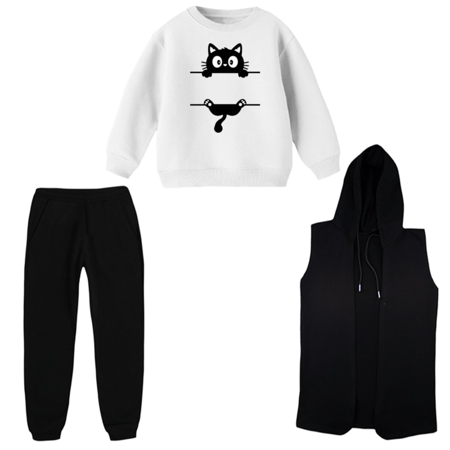 ست 3 تکه لباس راحتی بچگانه مدل گربه آویزان