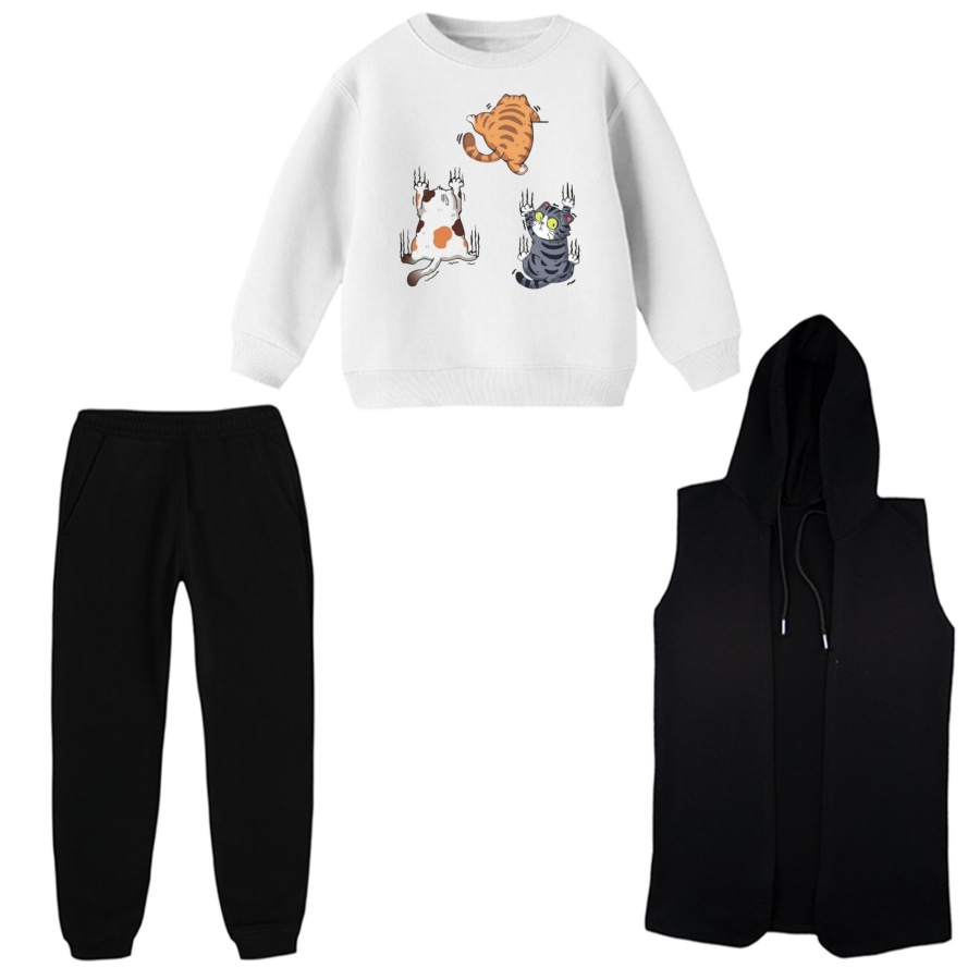 ست 3 تکه لباس راحتی بچگانه مدل گربه های فراری