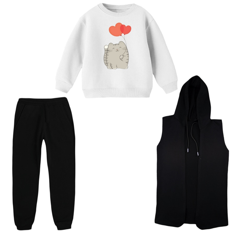 ست 3 تکه لباس راحتی بچگانه مدل گربه و بادکنک قلبی