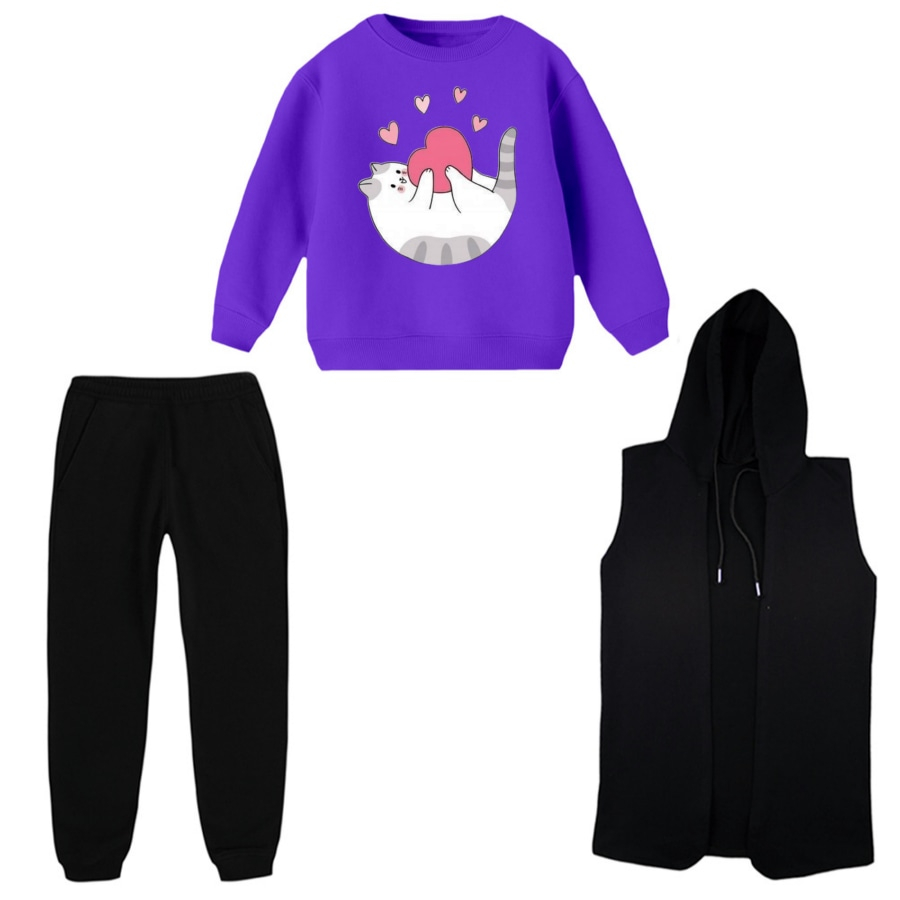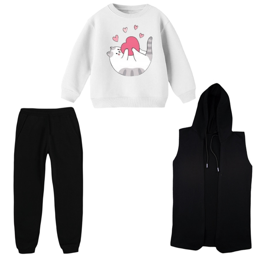 ست 3 تکه لباس راحتی بچگانه مدل گربه و قلب