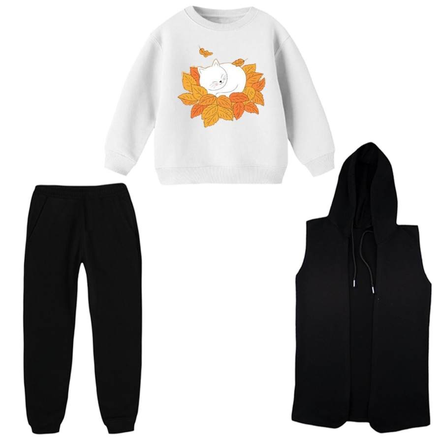 ست 3 تکه لباس راحتی بچگانه مدل گربه پاییزی