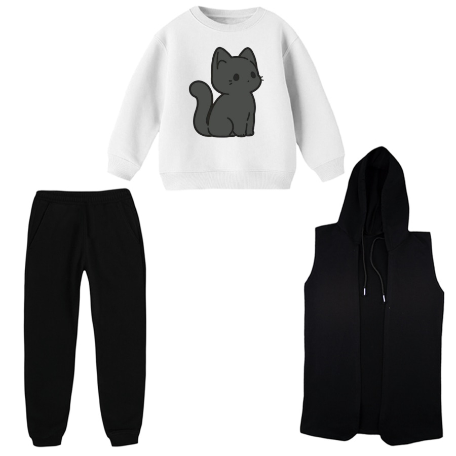 ست 3 تکه لباس راحتی بچگانه مدل گربه کد 5