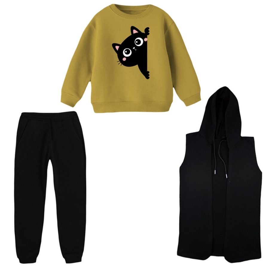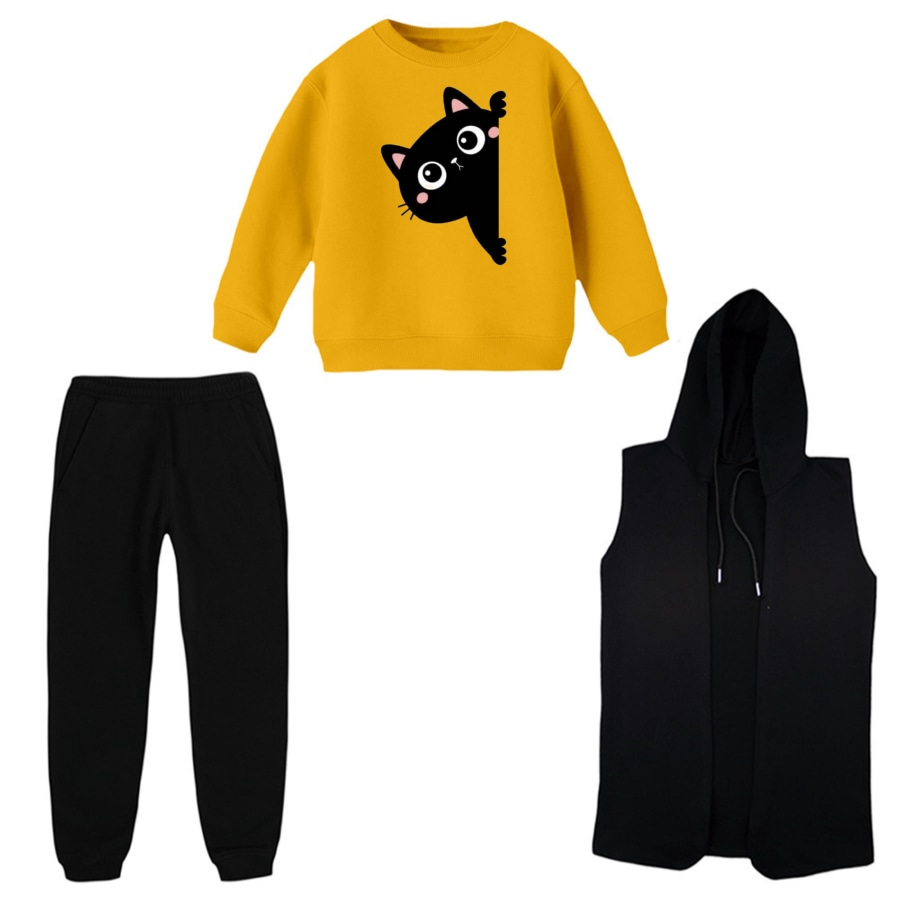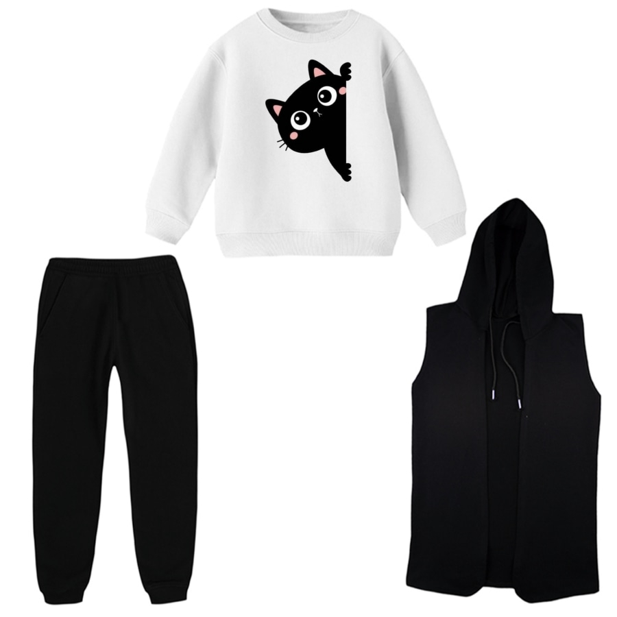 ست 3 تکه لباس راحتی بچگانه مدل گربه آویزان