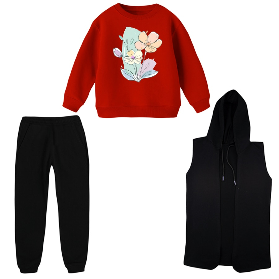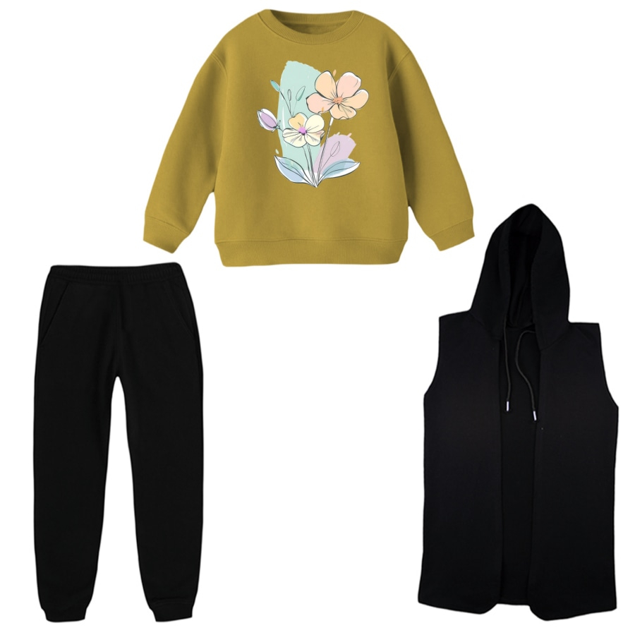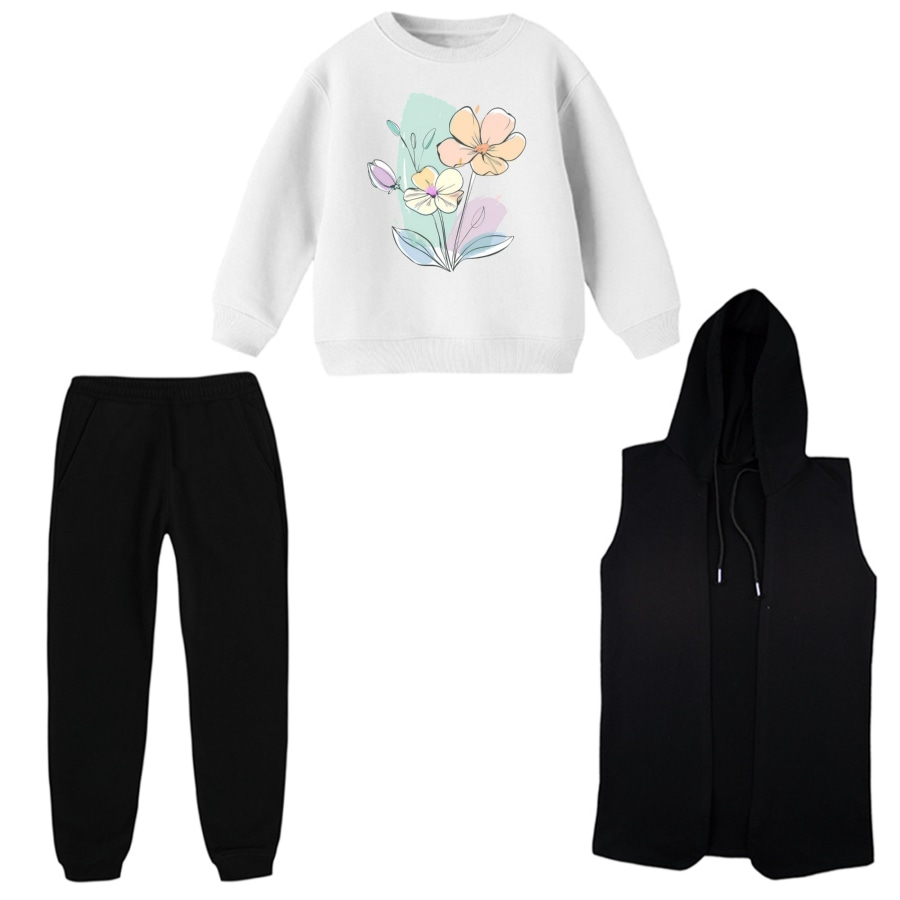 ست 3 تکه لباس راحتی بچگانه مدل گل کد 1