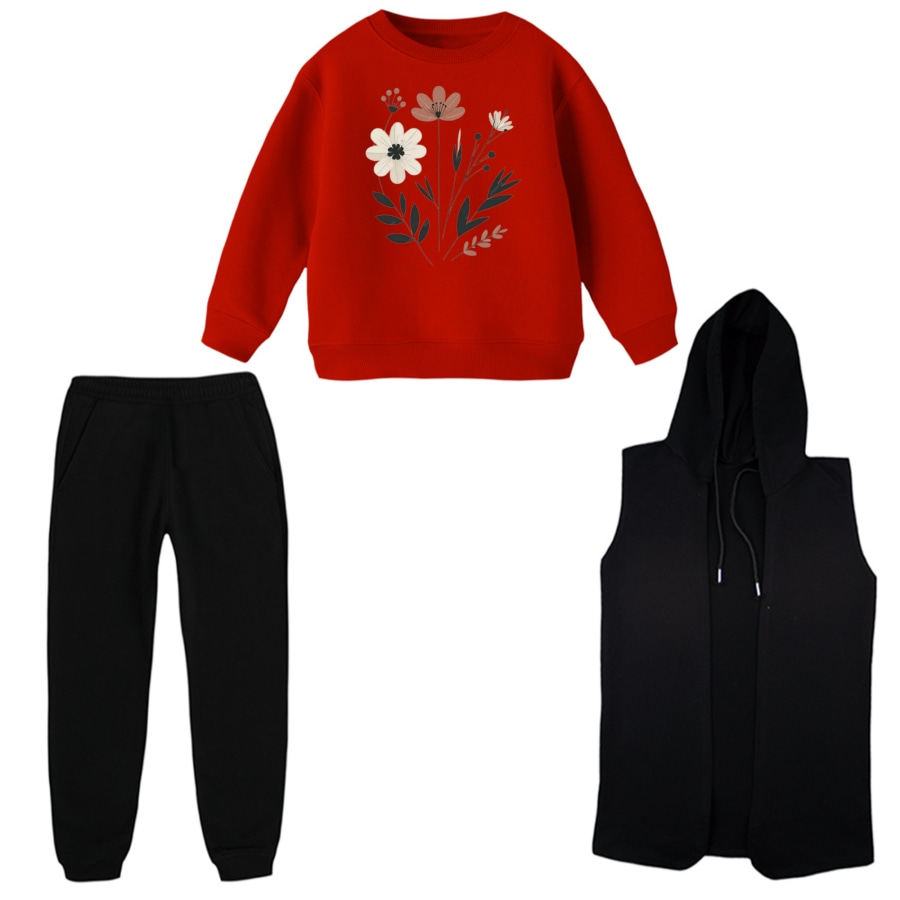 ست 3 تکه لباس راحتی بچگانه مدل گل کد 1